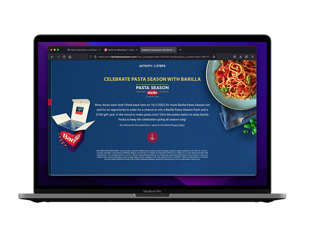 We offered a chance for pasta lovers to win an advent calendar of Barilla products and celebrate National Pasta Month all October long.
